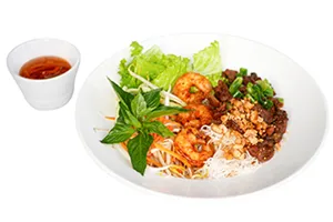 Shrimp meatball in a beef broth with minced lemongrass and thick vermicelli noodles.