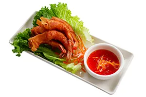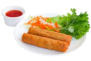 Hot crispy egg rolls with shrimp. Served with sweet fish sauce.