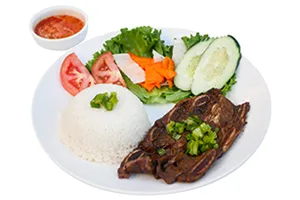 Grilled marinated eye round steak wrapped around onion. Served with sweet fish sauce.
