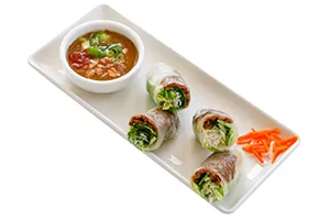 Grilled pork, mint, lettuce and vermicelli wrapped in rice paper. Served with peanut sauce.