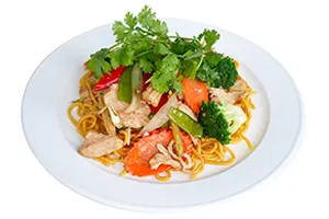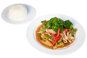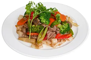 Our spicy lemongrass sauce is stir fried with snow peas, broccoli, peppers, onions, and your choice of beef, chicken, shrimp, or seafood. (For seafood add $2)